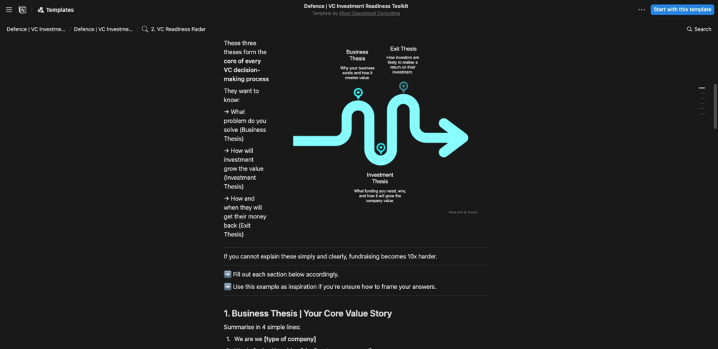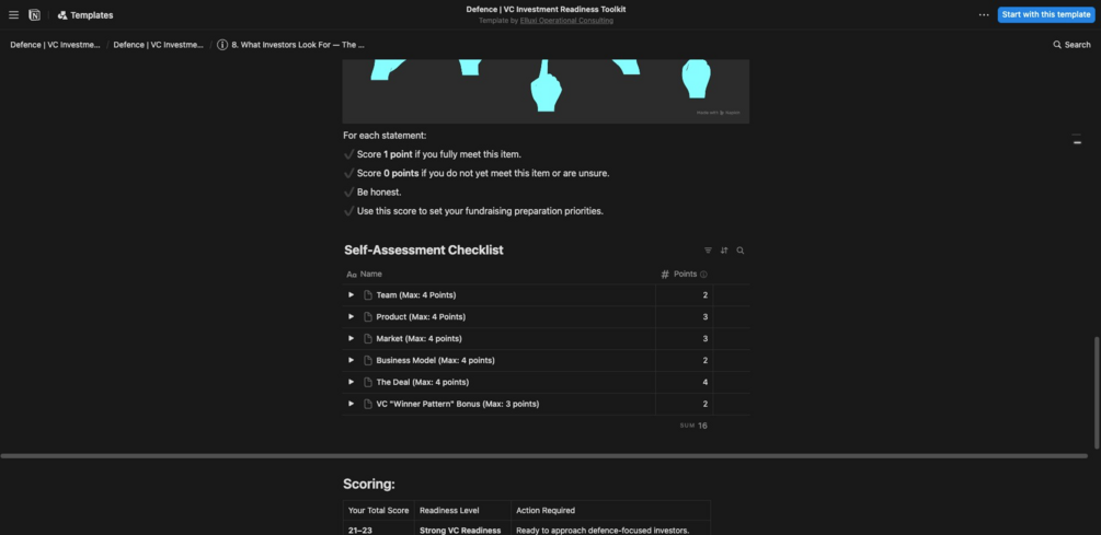 A step-by-step Notion template to help dual-use and defence tech founders prepare investor-ready materials